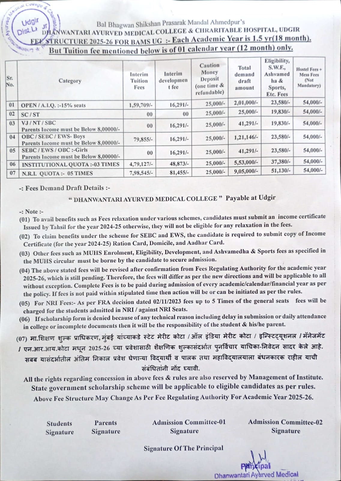 Admission and Fees Details 2025-26