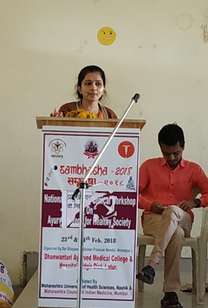 On 27th Dec 2018, a guest lecture on topic – Importance Of Rasaushadi In Clinical Practice & Scope Of Rasashastra – was organised in Dhanwantari Ayurved Medical College and Hospital. Dr. Pallavi Bhange (Pune) delivered an informative talk on this topic. This lecture was attended by Second Yr students and Teachers.